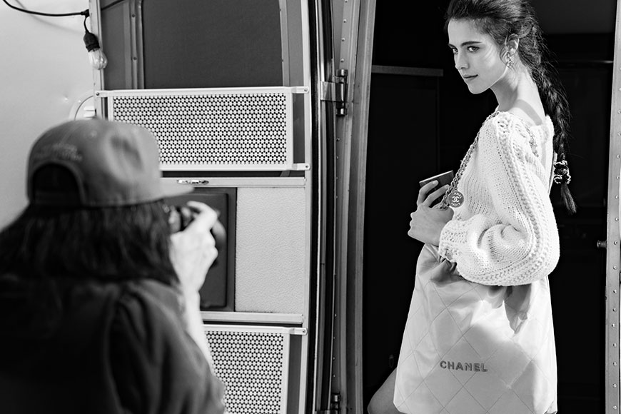 品牌日前釋出 CHANEL 22 的廣告拍攝花絮照,由合作無間的雙人攝影師 Inez & Vinoodh 掌鏡,找來品牌好友 Lily-Rose Depp、Margaret Qualley 和 Whitney Peak 齊齊出鏡,演繹 CHANEL 22 的不同風采與氣質。