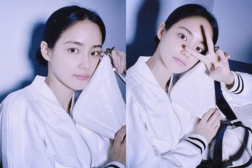 韓國名模洪秀珠(Hong Su Zu)形象清純漂亮,身穿全白造型的她,再配上白色 Triangle Bag,散發仙氣女神氣質。