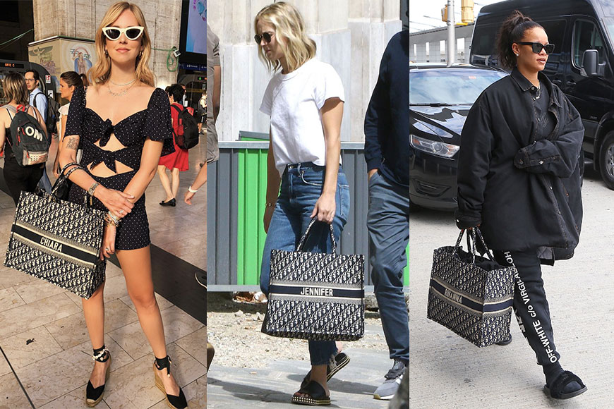 以隨性優雅為賣點的 Dior Book Tote,容量大又時尚,甫推出市面即成為大熱袋款。一眾外國 KOL、女星,如 Chiara Ferragni、 Rihanna 及 Jennifer Lawrence 等,更是大碼尺寸 Book Tote 的用家,愛其方便又易襯。