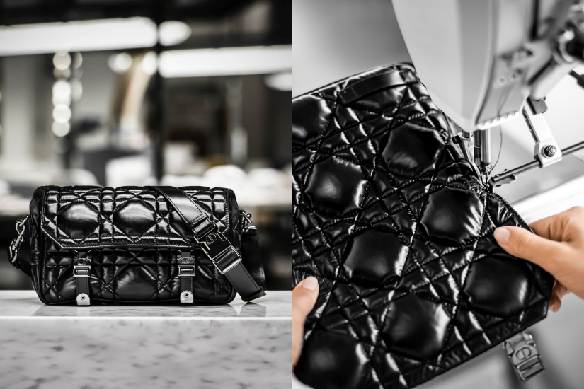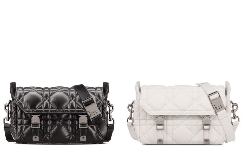創作總監 Maria Grazia Chiuri 每季都會為這款 DiorCamp 郵差袋注入新設計靈感作詮釋,來自 Dior 2022年秋季系列的款式,加入 Dior 標誌細節,選用小牛皮製作,獨特的大型藤格紋圖案縫線絎縫效果引人注目。運用了皮革創新技術,袋身的羽絨服面料既輕盈又柔軟,將輕巧與高性能結合,體現工藝坊精湛的技藝。袋款設有翻蓋,以及運動服飾風格的金屬色調「CD」扣環,配備可調整和可拆卸的肩,適合搭配不同風格的都市造型。