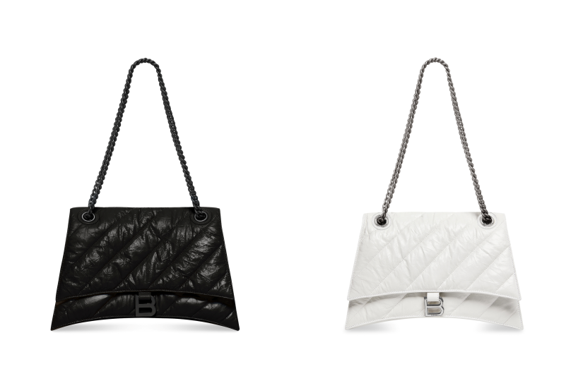 於最新廣告中,Bella Hadid 以背部全裸的姿態詮釋 Balenciaga Crush 手袋,同時登場的還有女模張麗娜。這款手袋極具可塑性,採用了品牌標誌性的 Hourglass 沙漏造型,由柔軟皮革材質配合斜向絎縫填充設計,呈現出柔軟觸感,備有不同尺寸,並提供有亮面、亮面與鱷魚壓紋等多種選擇,加上能自由調整長度的鍊帶,滿足日常造型不同需求。