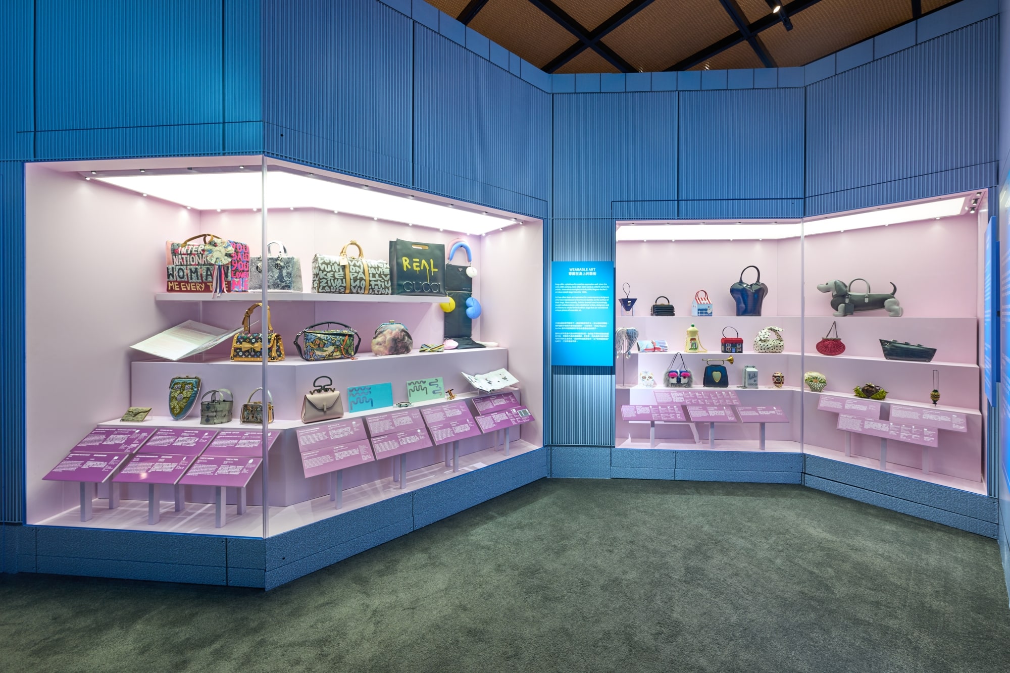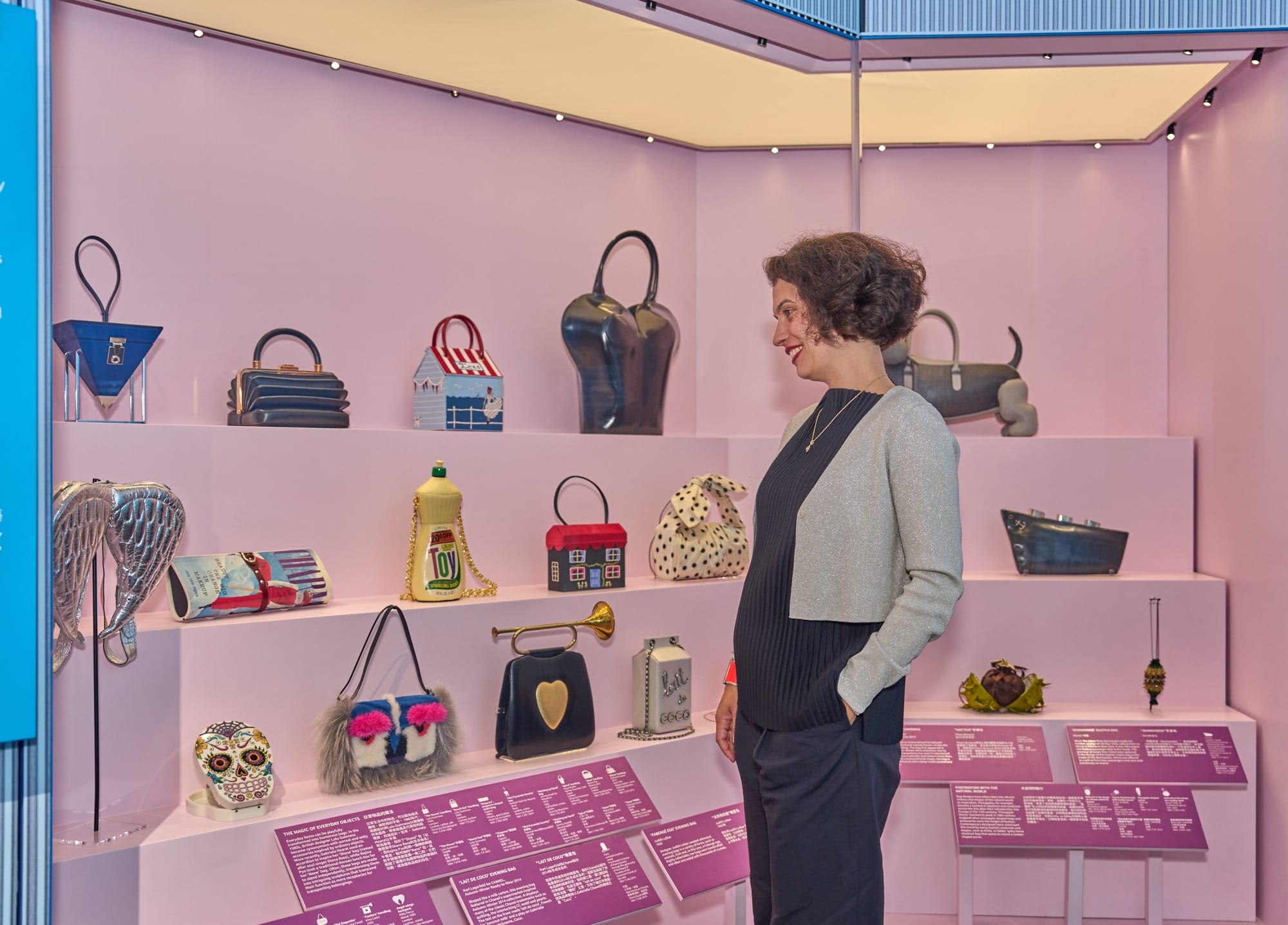 此次展覽劃分為「功用與性能(Function and Utility)」、「地位與身份(Status and Identity)」和「設計與製作(Design and Making)」,從設計師品牌手袋、小型化妝盒到功能性背包,當中包括 Sarah Jessica Parker 於《Sex and The City》中所用的經典 Fendi Baguette 手袋,以及同戴安娜皇妃最愛用的 Lady Dior 手袋等。香港站的亮點之一,是陳慧琳 ( Kelly Chen) 的 13 件私人珍藏手袋也展示其中,可以從中了解她幕前或幕後,以及每個時代的一些重要的回憶和經歷。