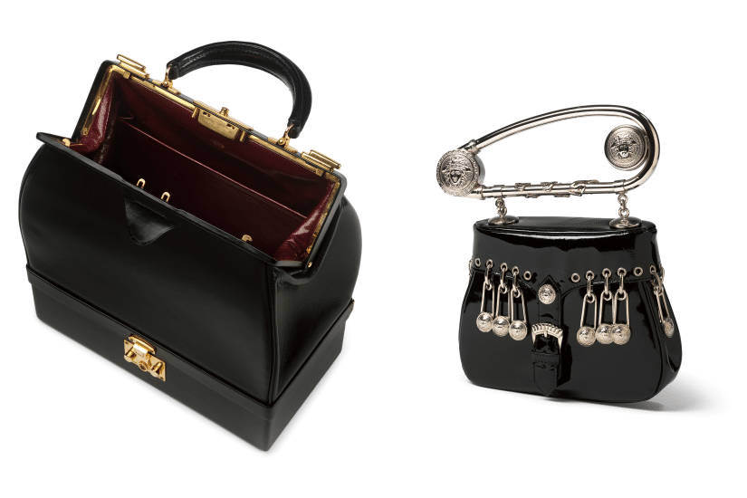 (右) Gianni Versace,「Safety Pin」手提袋 ,1994 春夏系列 , 意大利 © 英國維多利亞與艾爾伯特博物