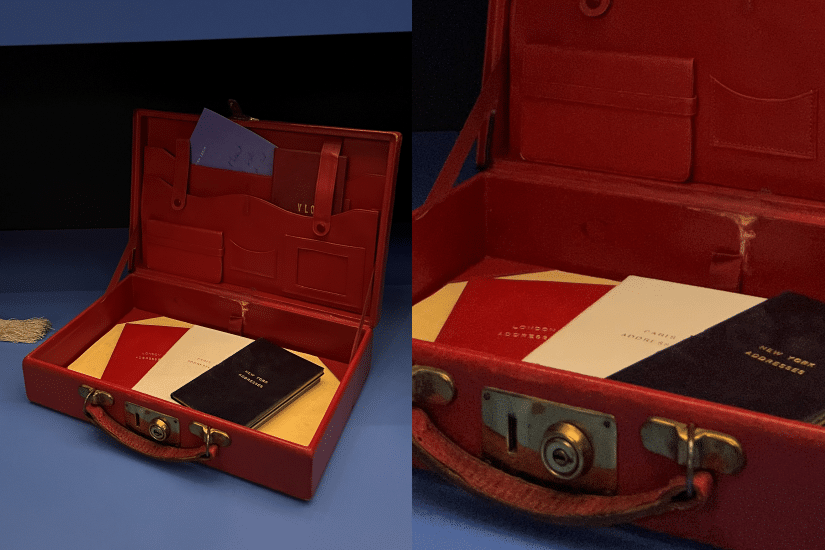 Dr. Lucia Savi : 首先我會選擇來自英國女演員 Vivien Leigh 的紅色公文包,它具有真實的功能性,內裡收藏著用來記錄倫敦、巴黎等地址的記事簿,當時不像現今年世代可以透過電話、訊息或電郵來聯絡,而這個公文包正是隨身帶著來回覆書信的,反映了當時的年代。