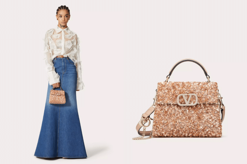 Valentino Vsling Handbag 迷你尺寸卻不失實用,可以手挽及配備長肩帶,飾滿閃亮珠片,非常適合派對與宴會造型!