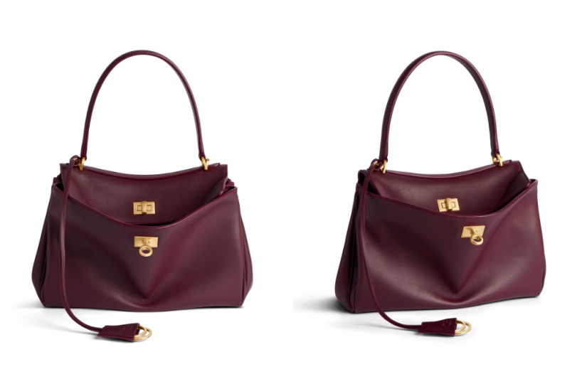 Balenciaga 的 Rodeo 手袋以極簡造型,配上柔軟垂墜小牛皮,營造出一種奢華生活感,手袋自面世便成為人氣袋款。除了大尺寸,也有推出較小尺寸,但也完全足夠應付日常所需。這款酒紅色 Rodeo 手袋,低調地為新年造型注入色彩,也非常適合搭配日常造型。