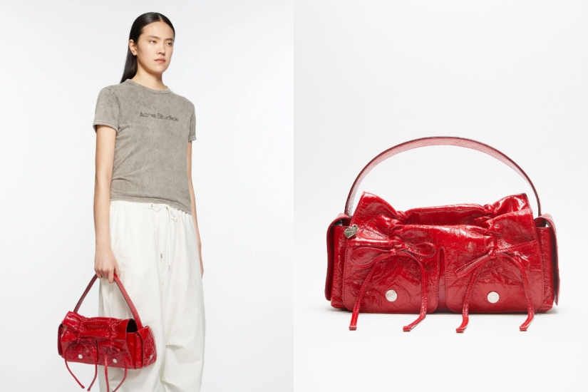Acne Studios 推出的 Multipocket Bag,袋身的兩個小口袋上加入蝴蝶結,為充滿工裝氣息的手袋設計注入充滿甜美氣息。配合新年造型,可以選上紅色漆皮設計,搶眼又獨特!