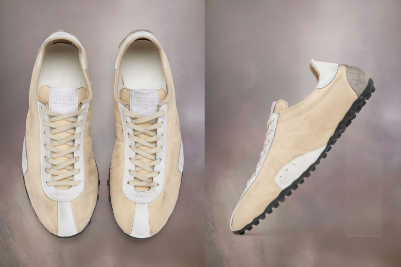 Maison Margiela 也推出薄底運動鞋款 Sprinters ,靈感來自復古跑鞋,採用粗棉布、絨面皮革和小牛皮精心製作而成,並經過復古處理,呈現出洗舊效果。鞋舌飾有標誌性的數字標識,標誌性針腳細節則於鞋背位置。