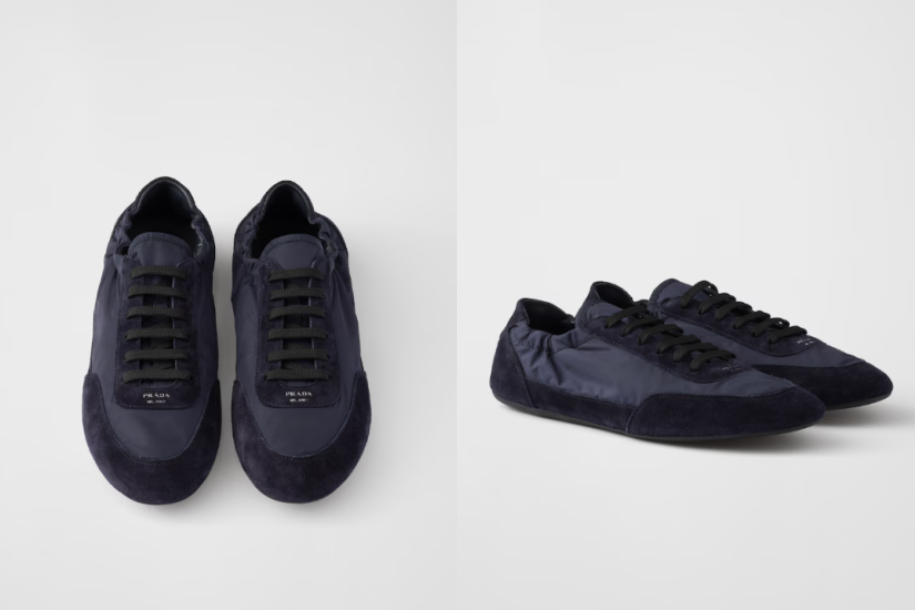 Prada 這款最新運動鞋以 Re-Nylon 和麂皮製成,設計極致輕盈,富有結構美感,透過多種物料體現 Prada 的運動和工藝靈魂。此平底鞋底讓人聯想起經典的芭蕾舞鞋,兩側有橡筋帶,方便穿脫。