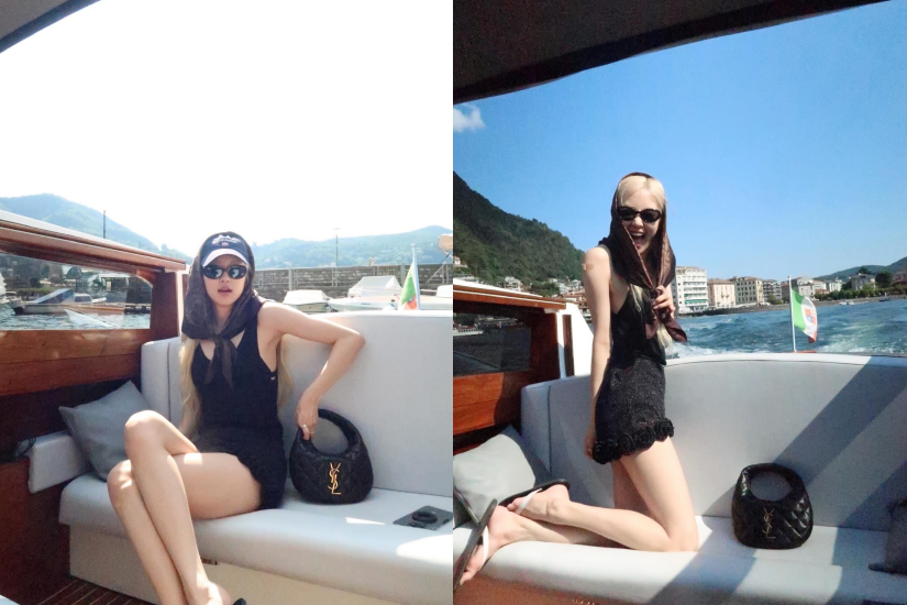 Rosé 正在巡迴演唱會中,在歐洲站期間特別偷閒出海享受陽光與靚景,在一身休閒私服穿搭中,身穿了 Oseree 的迷你裙,搭配棒球帽與 The Row 皮革人字拖,頭上綁著 Saint Laurent 腰果花紋絲巾,而且更搶先曝光了 Saint Laurent 於今年秋季推出的 Icarino 手袋!