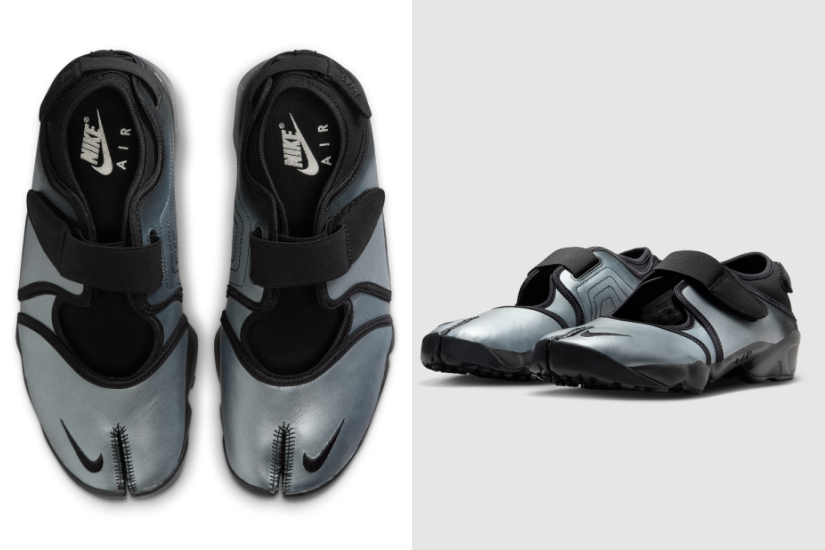 Nike Air Rift 「忍者鞋」最早於 1996 年問世,採用獨特分趾鞋頭設計,結合 Nike Air 緩震鞋底,個性十足又不失舒適感,其魔術搭帶設計更貼合當下的 Mary Jane 潮州。Nike 多年來一直以不同物料及顏色組合,為鞋款推陳出新,今年推出的銀色皮革款式,穿上腳便輕鬆為造型添亮點。