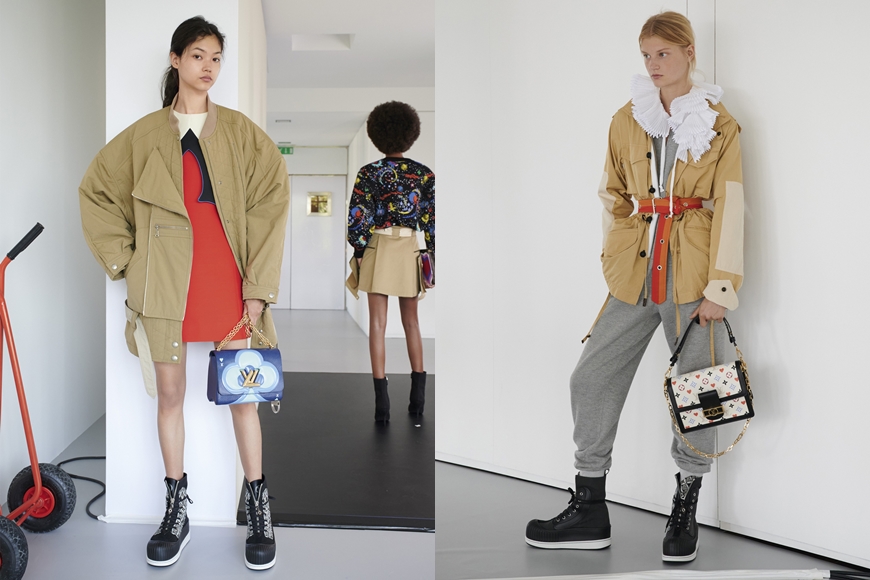 系列發布場地由上年浩大的 TWA 飛行中心移師至創意總監 Nicolas Ghesquière 於品牌巴黎總部的工作室,以辦公椅、影印機、文件櫃、滅火筒等作背景,令人感覺更親切貼地,也表達出其實只要調整好心態,運用想像力,一個你熟識而又經常處身的地方,都可以是一個有趣的旅遊目的地。