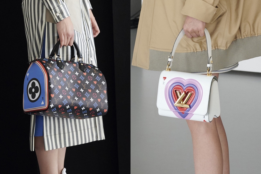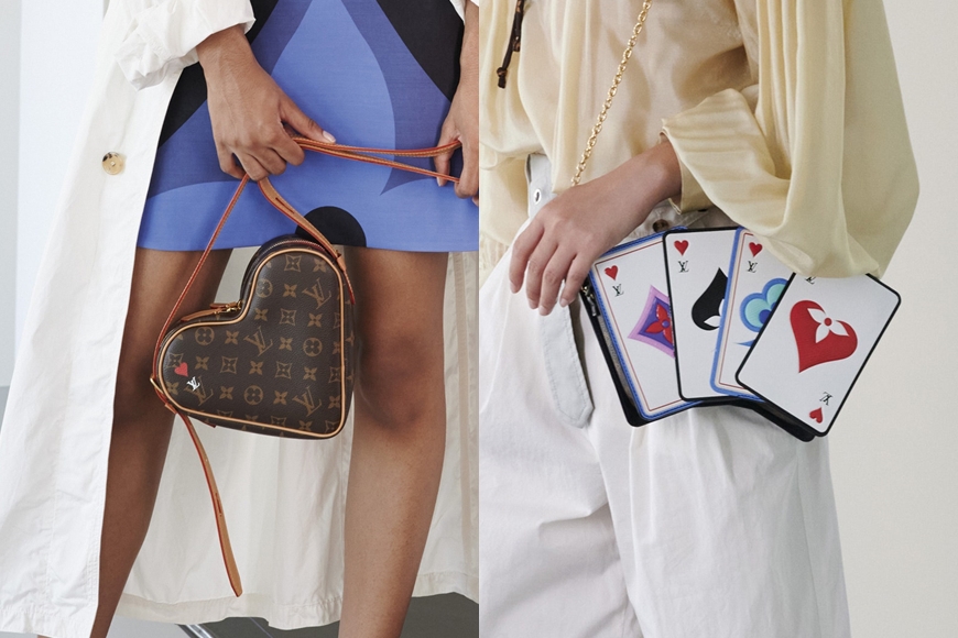 當然,系列的手袋絕對是沒有不提及的理由,延續玩味的風格,已有經典袋款如 Twist 、 Speedy 、 Petite Malle 等都披上子撲克牌花色混 monogram 的新面孔。但最搶眼的莫過於是心型包和撲克牌包,前者的立體愛心形輪廓可愛度滿分,未心成為熱搶款絕不意外;後者直接把四張撲克牌合併成袋款的設計更是一絕,也為系列更添年輕化的感覺。