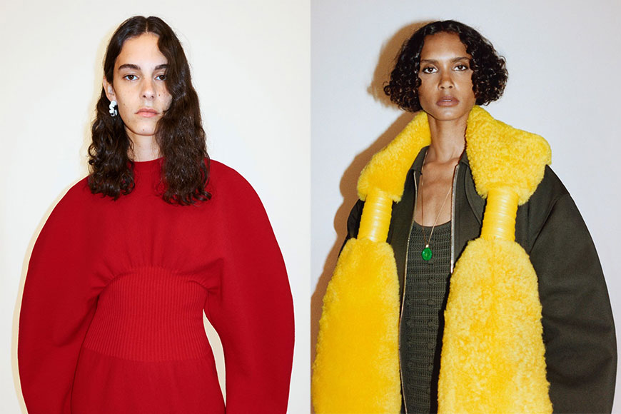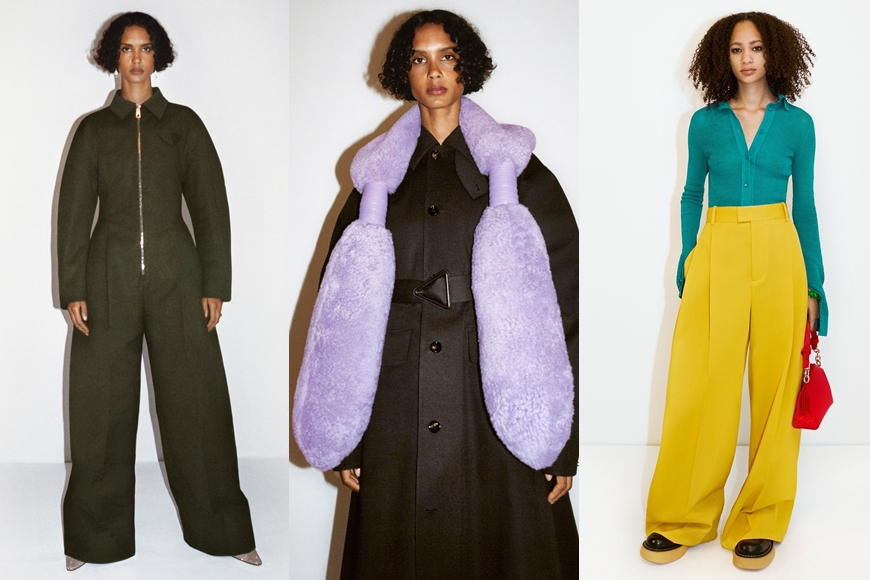 「在這段最黑暗的時間,創意和創造力尤其重要,若然不製作其他品牌找不到的服飾,那又有甚麼意義?」 Daniel Lee 在設計這系列時是秉持著這樣的意念的,那他是如何體現出這樣的堅持呢?從服裝上前衛誇張的設計和輪廓就能找到答案:巨型澎袖修腰連身裙及夾克、充滿垂墜感的闊腳褲、極具份量感的絨毛粗圍巾,都顯示出他對於廓型與剪裁上的探索,演繹出服裝版型上的無限可能性,令整個系列不流於單調,顯得更有趣。