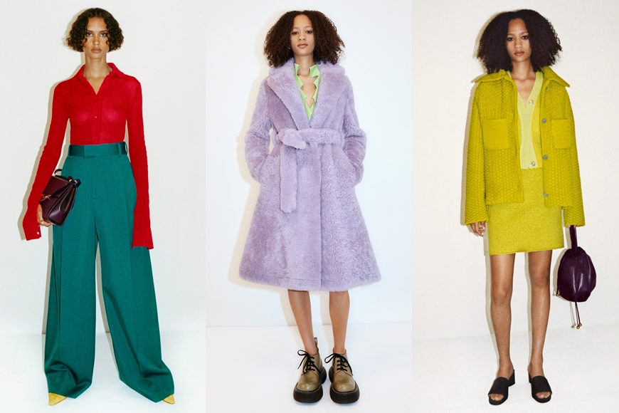 另外多元化的用色也是一大重點,系列仿如調色板一樣,淡紫色、翡翠綠色、大紅色、鮮黃色、巧克力棕色躍現在襯衫、皮衣、尖頭樂福鞋等單品上,塑造出豐富的視覺效果,再配以著重舒適感的柔軟材質,令本季系列成為滿載居家感,且令人心情愉悅的「療癒系列」。