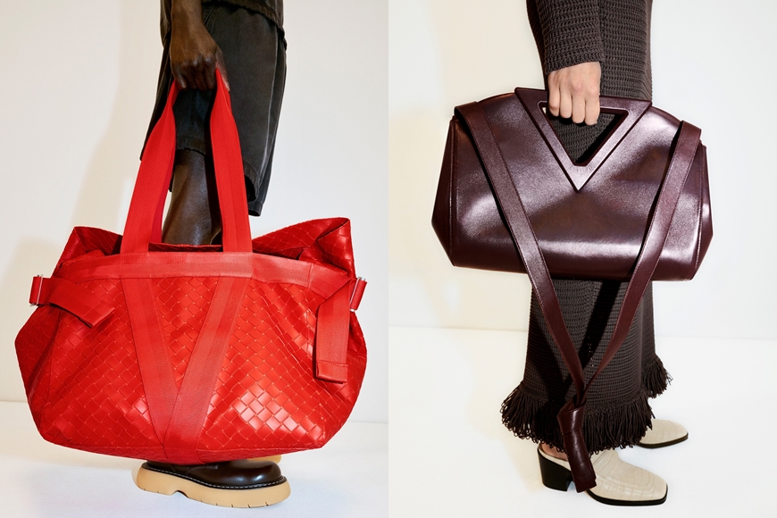 當然,作為當季火紅的「It Bag 製造機」,手袋是最不忽略的單品, Daniel Lee 將「Veneta」中的「V」字元素結合品牌標誌性的編織工藝,製作成手提袋;又把「V」字融入於手袋提把設計當中。另外鏤空的扇型手提包和小巧的五角形手袋亦體現出 Daniel Lee 對於手袋輪廓多樣化的追求,未來絕大機會能晉身 It Bag 之列!