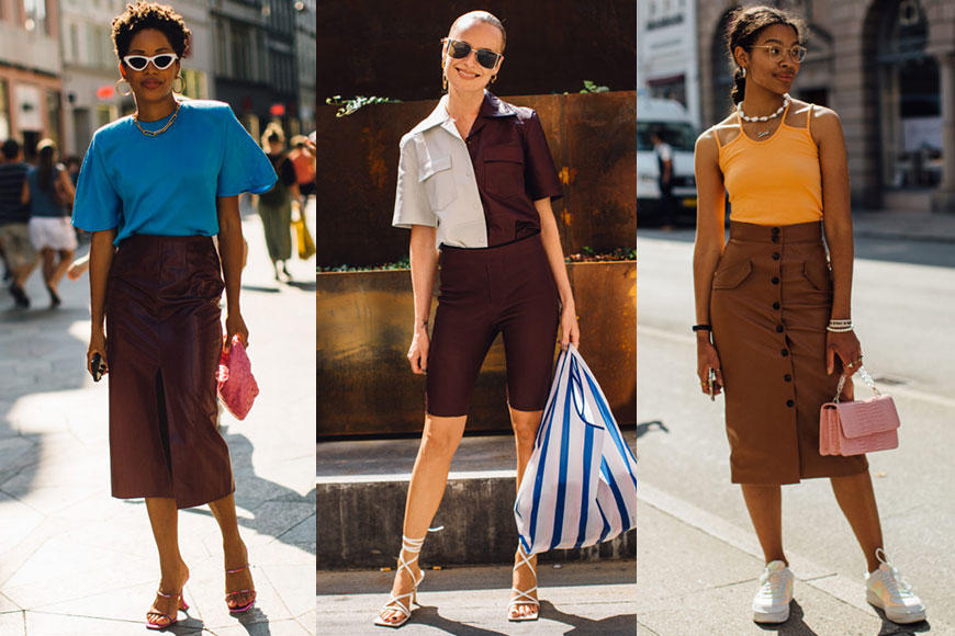 自問走知性路線,完全不能接受粉紫、粉紅的少女味?北歐的時尚博主也有另一個熱捧的顏色選擇。充滿復古感的深褐、深啡色都常見於哥本哈根時裝周街拍,一件鮮艷搶眼的淨色上衣,配上同樣色彩飽和度高的深褐色 pencil skirt,簡約大氣。想打扮再突出一點的話,可考慮米白與深啡的對比色穿搭,讓你由夏末到初秋的每一刻都時尚度滿分。