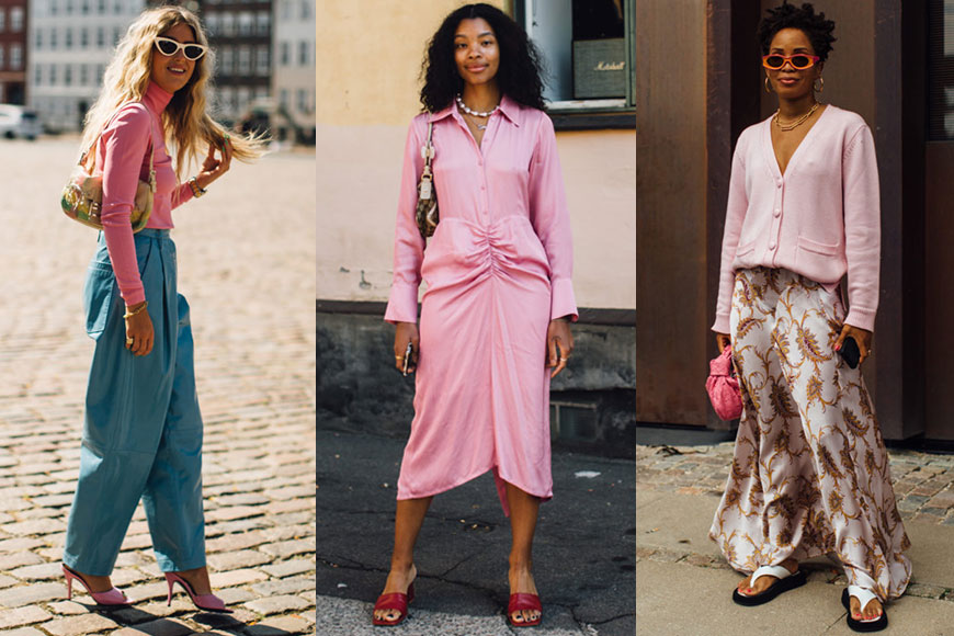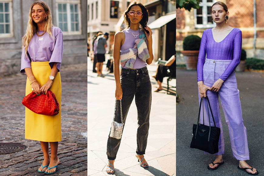 先跟大家了解一下流行顏色吧!在整個哥本哈根時裝周街拍中,曝光最多的一定是浪漫粉紫色系。雖然粉紫色不是百搭任何膚色,不過北歐的時尚博主們並沒有顧忌,通通把粉紫穿在身上。健康膚色的你,不妨在粉紫打扮中添加鮮黃、鮮紅等亮眼色系,有打亮膚色的效果。而自信皮膚白晢無瑕的,當然歡迎挑戰最高難度的粉紫 total look!