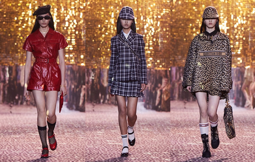 今季繼續一貫的大浪漫主義,不論服裝、妝容及髮型都被唯美花海攻佔,呈現出究極浪漫的夢幻氛圍。服裝上,以大量的花卉圖案點綴復古味濃的設計細節,紅玫瑰混合紅白波點的連身裙、田園風碎花圖案、優雅秀氣的藍白格仔套裝都加入了公主裙、尖領等充滿懷舊感的元素,令模特兒有如一位穿越時空的 50 年代美國少女一樣。