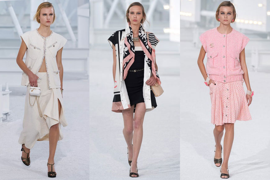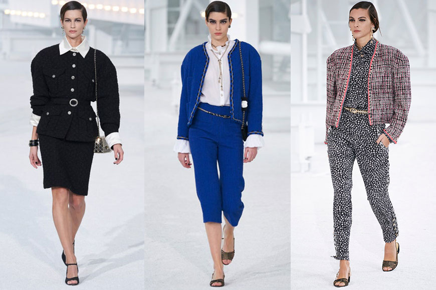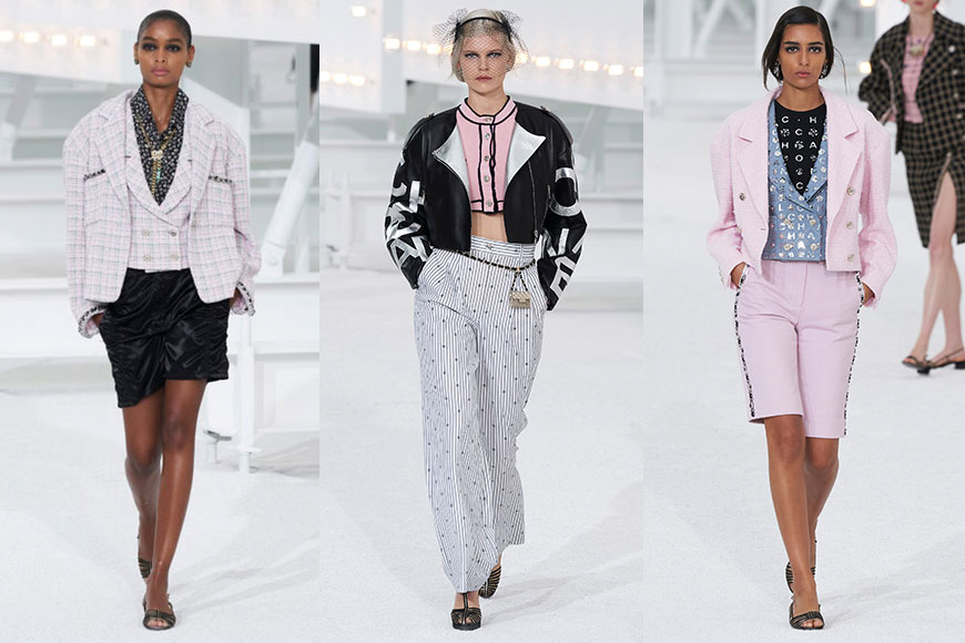 經過 Resort 2021 及 Fall 2020 Couture 的線上發布會之後,CHANEL 終於回歸熟識的舞台:巴黎大皇宮,舉行 2021春夏系列大秀。品牌創意總監 Virginie Viard 把荷里活的感覺帶到 T 台,在純白背景中打造有如洛杉磯著名景點 Hollywood Sign 的 “CHANEL”,簡潔直接地把當季主題呈現。