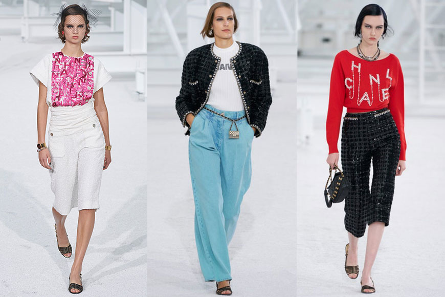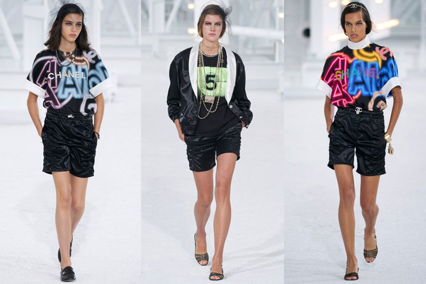 以電影為主題的系列,當然也不乏電影元素。把有如廣告看牌的霓虹效果套用於 CHANEL 字樣中,再加入到 T 恤當中,設計時尚易於配襯,相信將會成為來季的大熱單品!搶眼的霓虹印花圖案之外,Virginie 也把 CHANEL 的字樣加入多款 T 恤及針織上衣當中,加上珍珠、鏈帶等細節,絕對是大家日常穿搭中必備的百搭單品。