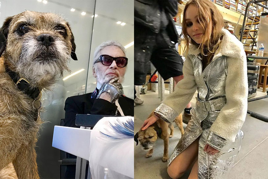 這隻「全球最時尚小狗」名為 Frickey,牠的「爸爸」是 CHANEL 的舞台設計師 Stefan Lubrina。Frickey 靠著「父幹」於過去多年成為 CHANEL T 台常客,幕前的明星模特兒、幕後的工作人員無一不認識牠,而牠當然也是 Karl 的毛孩朋友,深得 Karl 的疼愛。