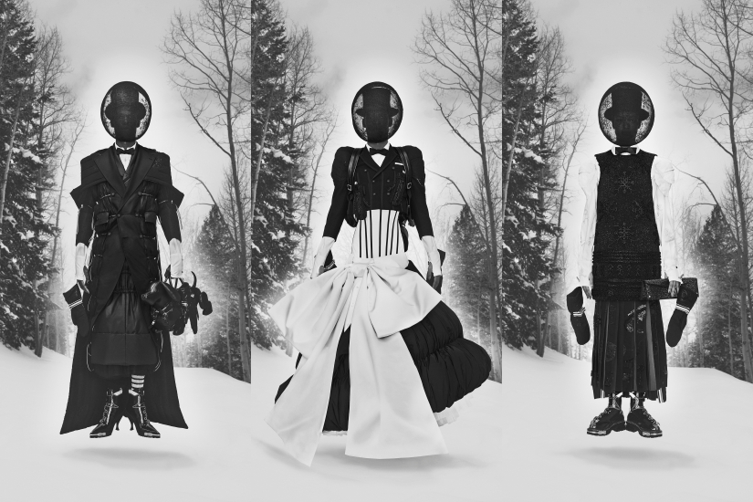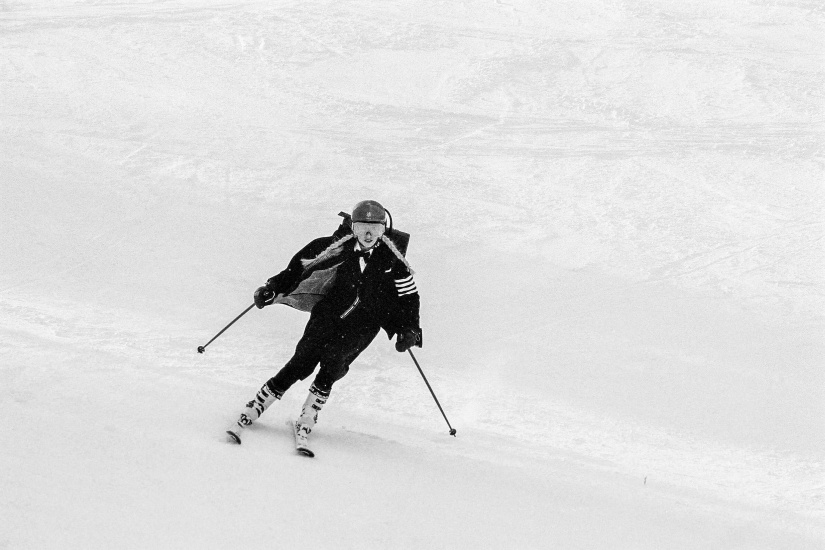 誰說運動時必須穿上功能彈性服?誰說女裝只為女士優先?而男裝則不能是女裝?在 Thom Browne 的世界裡,正裝可以出現在滑雪道,滑雪冠軍可以是模特兒,任何事都可以出現,只要是有趣便可以。