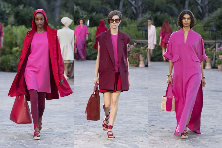 除了經典的米白色系,系列中亦不乏艷麗彩調,從明亮的腮紅粉到粉紅,再到猩紅色,甚具視覺衝擊。