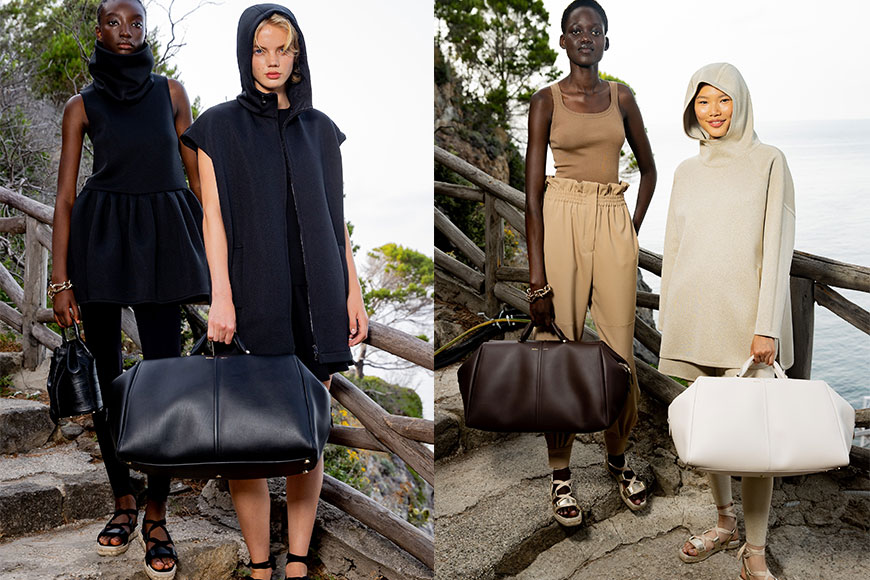 而品牌的經典 101801 大衣,今回選用高級科技針織面料製作,除可應對天氣變化,即使隨意塞進飛機行李架,取出時也不會褶皺變形, 整個系列主打奢華休閒的 Jet Set 風格的衣著造型。