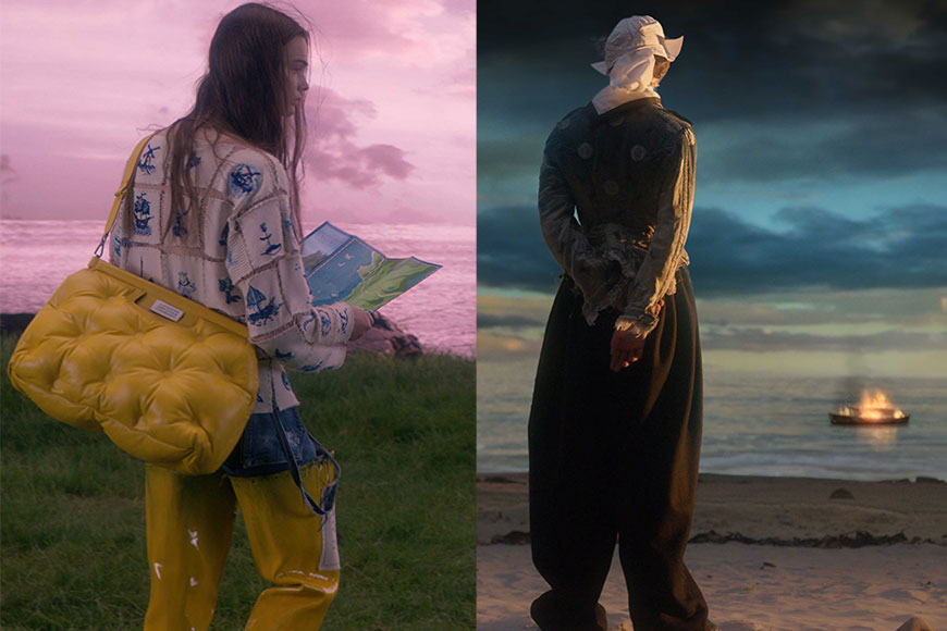 電影畫面採用了陰暗的色調,John Galliano 以一批漁民的舊照片作參考資料,故事圍繞着一群被外界孤立、沉默且壓抑的漁民們。他們身穿中世紀風格的服飾,剪裁貼身外套,配搭寬鬆長褲,或是防水面料的高腰褲子,頭戴近似中世紀海盜的小帽子,形象極為戲劇化。
