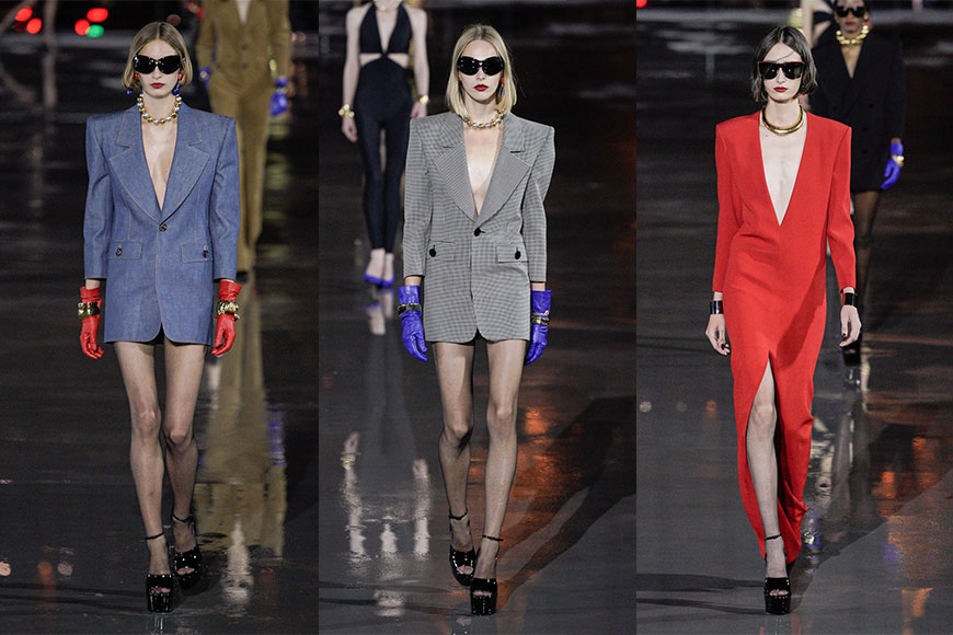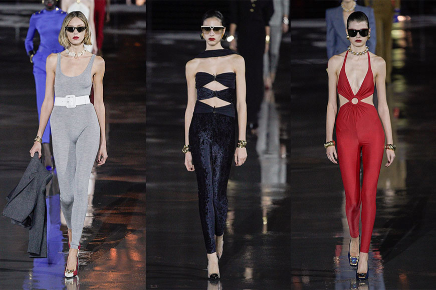 其實在 2017 春夏系列中,Anthony Vaccarello 曾向 Paloma Picasso 致敬,如今時隔五年後,再度向她致敬,透過俐落簡約的輪廓、抓皺與鏤空設計,以及份量感十足的金屬飾配飾,帶來一個中性略帶誘惑的系列。