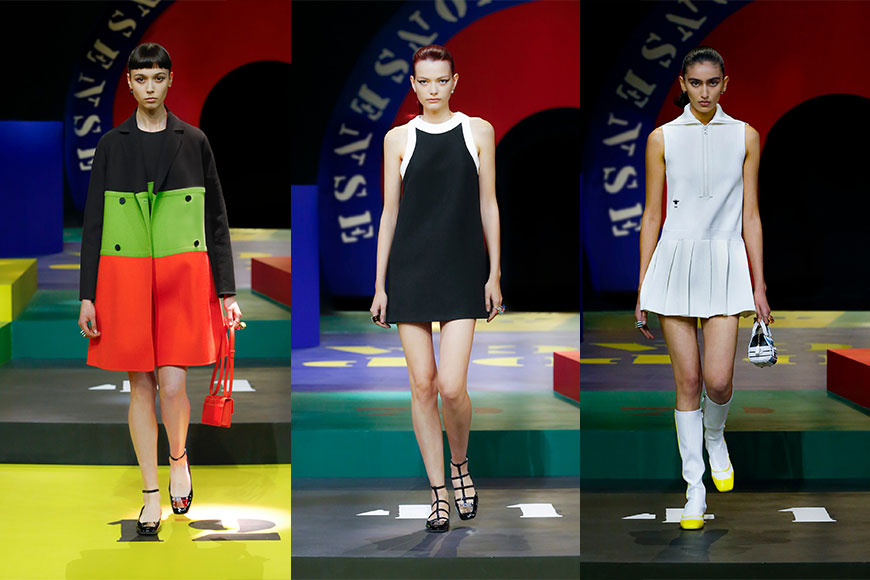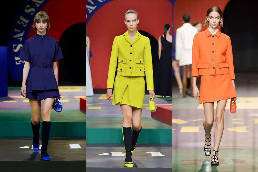 半身裙、連衣裙、精緻大衣、短褲及寬鬆剪裁外套,用上多種形式的配搭,組合成豐富多樣的色彩,黃、綠、紅、海軍藍、橙、莓果等色調交替呈現出當代的時裝美學,融合科幻的方型剪裁帶來懷舊復古感,也讓人想到 Marc Bohan 操刀設計的色塊之美。