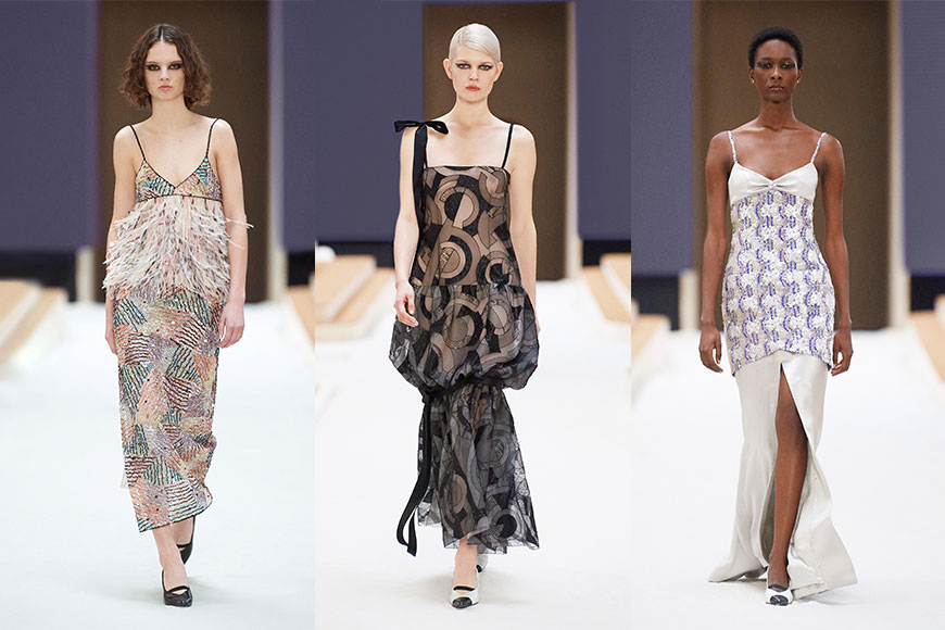 色塊、圖案……在刺繡工坊的匠師們手上,透過絢麗奪目的亮片與層層疊疊的刺繡圖案裝點出來,令每一件衣服本身就成為一件藝術品。雙層裙擺、鐘型輪廓、收腳褲…等設計,也流露著1920年代的影子。