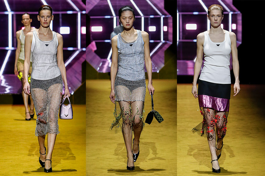 在時裝騷舉行前夕,Prada 在 IG 上發佈多位超級模特兒,如 Kaia Gerber、Kendall Jenner、Amanda Murphy 等的兒時片段,透過珍貴的生活回憶,帶出「女性成長」的主題概念。