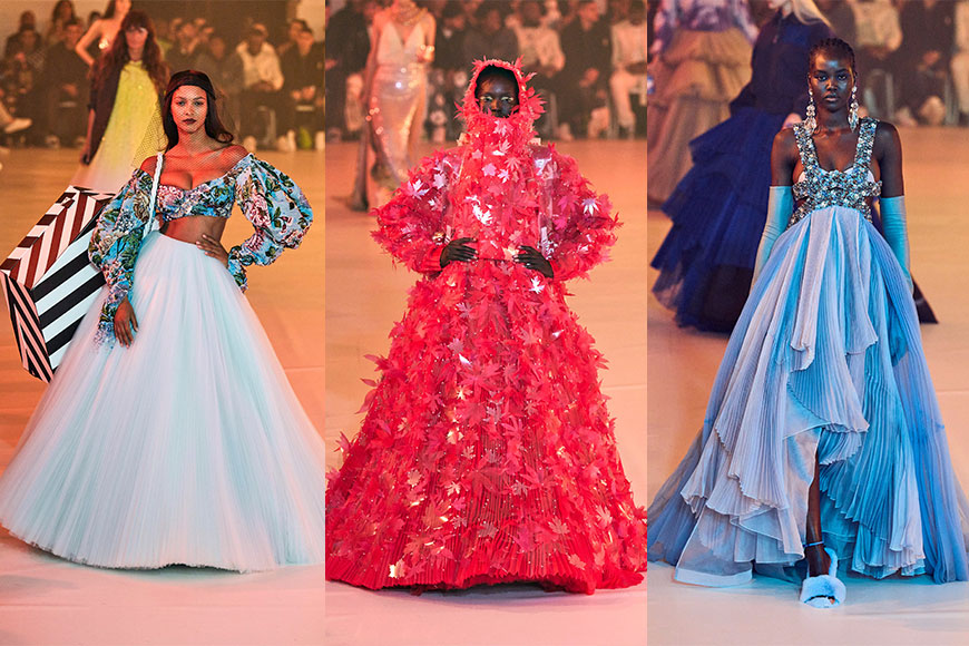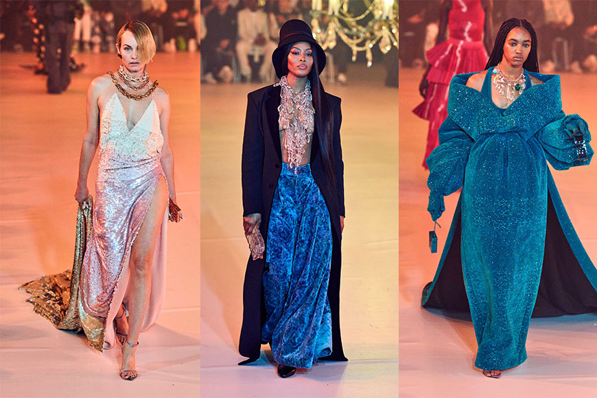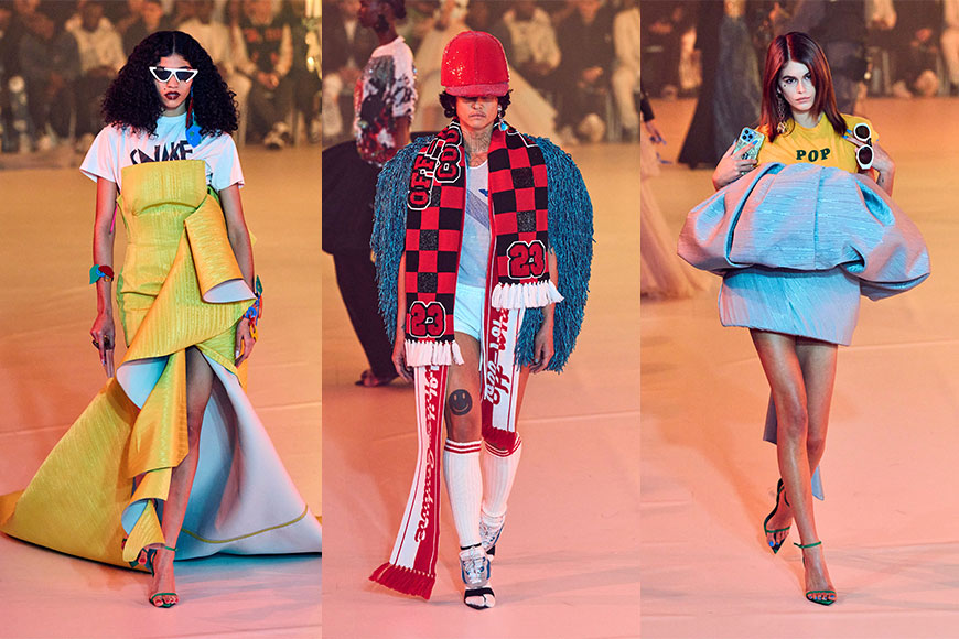 時裝騷的戲肉部份,是首度發表的高級訂製系列,當中共有28套精彩華麗的設計。這部份由穿著白色寬袖塔夫綢「婚紗」的 Bella Hadid 開場,而接下來的27個造型,更是一套比一套具話題。