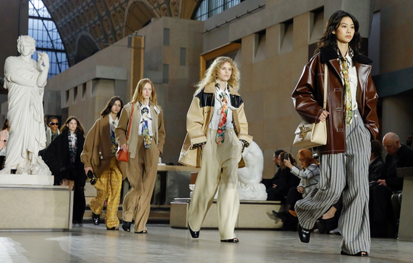 系列中所有的男女裝服飾,以至金屬飾件均用上粉紅色;女裝輪廓運用幾何褶襇,為鬆身造型倍添層次,配以束腰設計和極短的衣襬,營造出感性迷人的「S」形線條。當中亦有褶邊雪紡襯衫配搭高腰長褲造型,為整體注入幾分硬朗氣息。