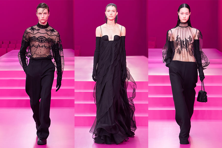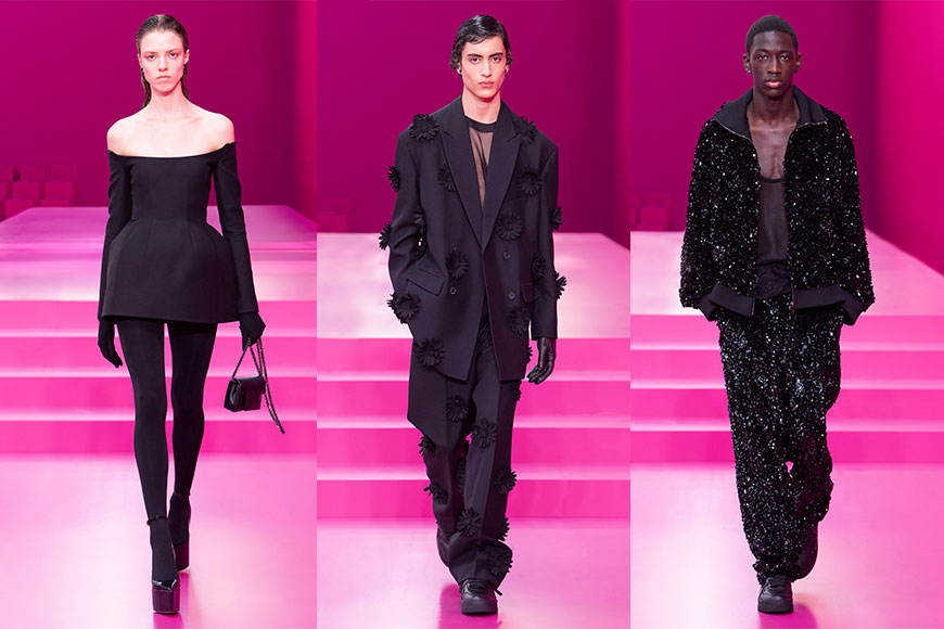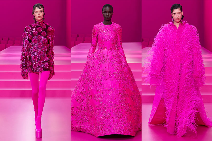這場由 Pierpaolo Piccioli 構思的粉紅色時裝騷,名為 Valentino Pink PP Collection,當中用上與色彩權威 Pantone Color Institute 聯手特調的粉紅色為主調,透過剪裁、物料、質感與細節,展現出粉紅色的無限可塑與個性 ,創造出一個純粹、強烈的系列。