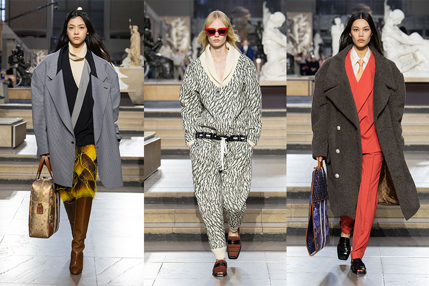 Louis Vuitton 首度把大騷搬進著名的 Musée d’ Orsay 博物館,在融合古典美學與現代科技的建築中,上演以「青春」為靈感的全新系列。時裝騷由剛奪得「第 28 屆美國演員工會獎」視后的品牌大使鄭浩妍開場,她的一身中性造型,預告了今季 2022 秋冬服裝的混搭風格。