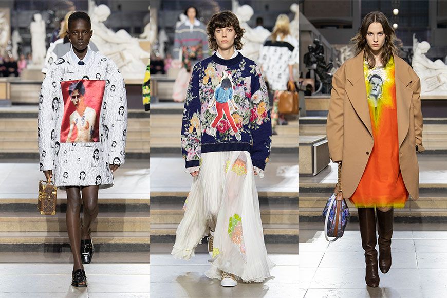 部份設計更印上英國時尚攝影師 David Sims 於1990年代的作品,Nicolas Ghesquière 表示:「我很喜歡這些作品,十分純真,展示一種春青的感覺。」品牌創作團隊將照片變成花朵圖案的貼花和刺繡細節,就像少年看完演唱會後歸家時購買的T裇,又或在他們的睡房內,貼滿偶像海報的碎花牆紙。