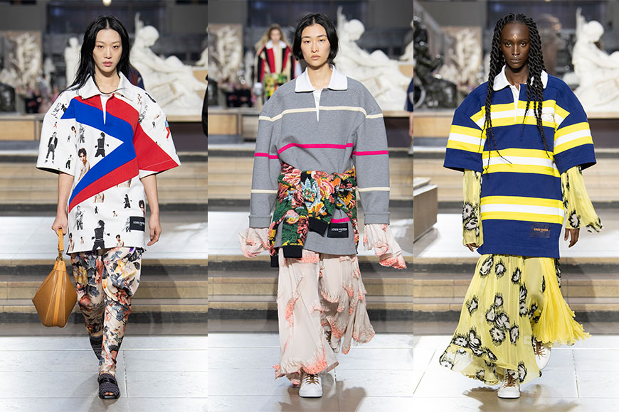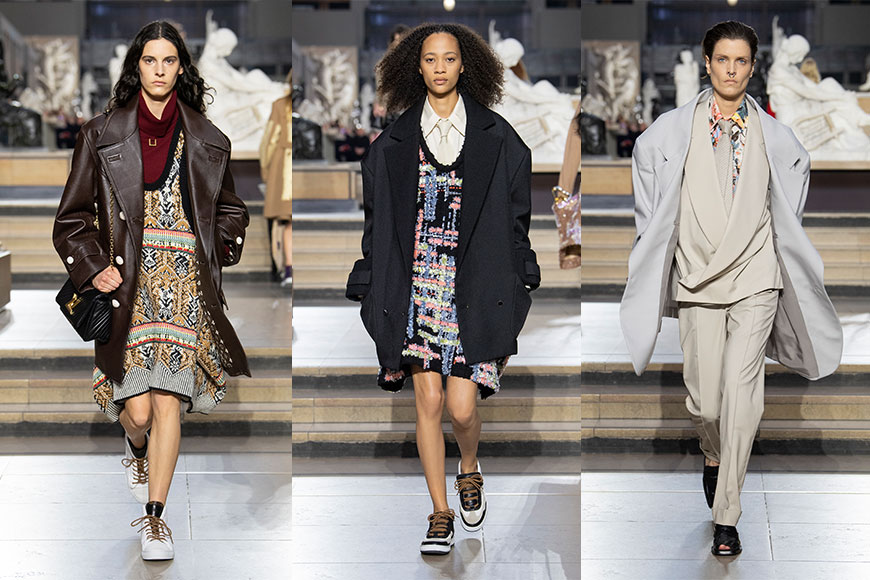 象徵校服的男裝西裝外套、皮革大衣、Polo 衫,糅合了 Nicolas Ghesquière 招牌式的前衛風格,加入寬闊的墊肩、超大的領片,輪廓變得寬鬆,拋開所有正統服裝應有的模樣,像青少年一樣無視所有規則。