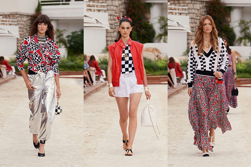而在 F1 方程式賽車終點可見的黑白格仔圖案大肆出現在泳衣、針織衫、紗裙、手袋等成為這季度重要圖案。