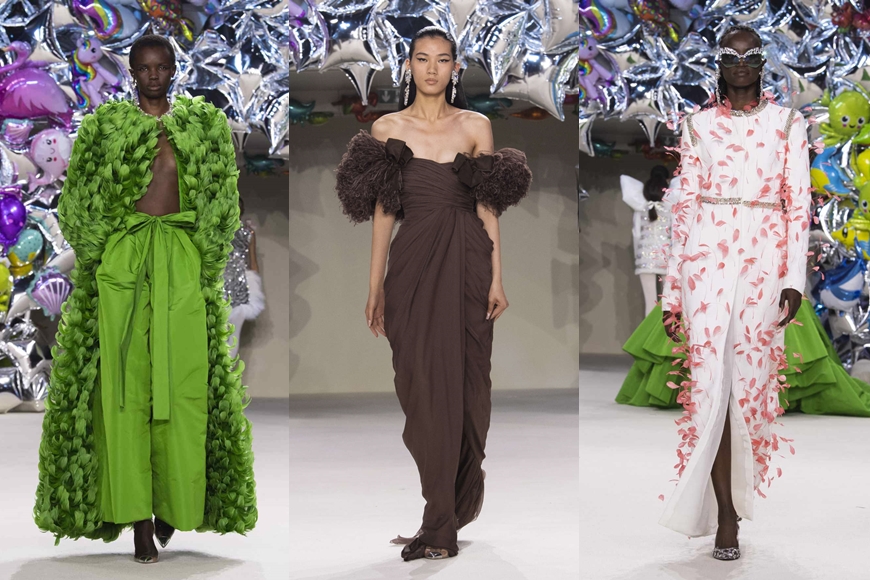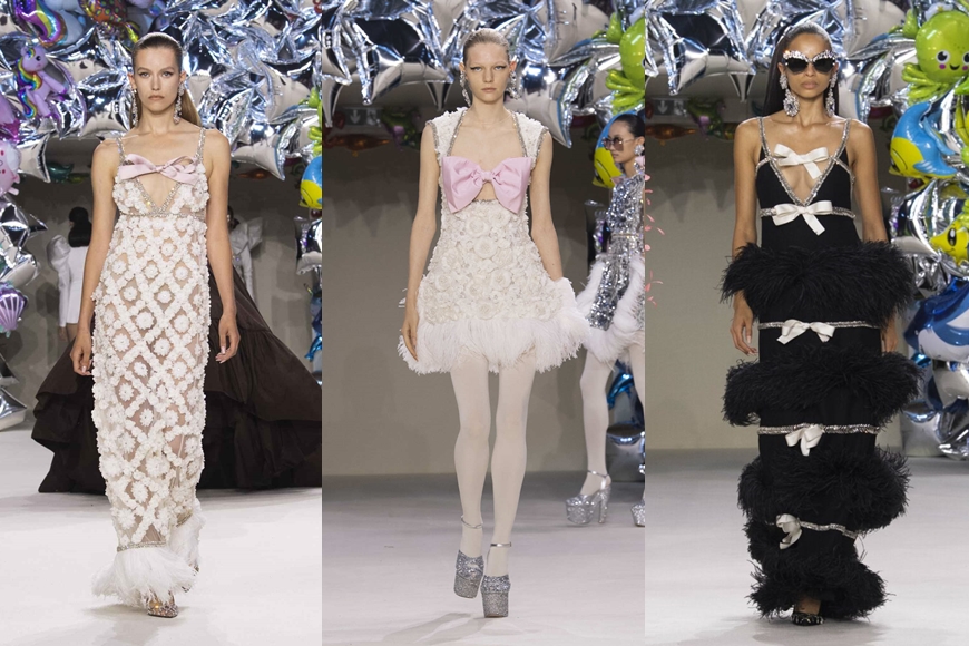 在今季秋冬高訂中,Valli 的野心並不止於此。他不僅希望那些招時牌禮服能獲得名流青睞,還要打造出女孩都渴望擁有的衣櫥,除了在騷場掛上各式童趣的氣球,在不少造型中都加上蝴蝶結點綴,讓大家走進甜美童真公主夢。