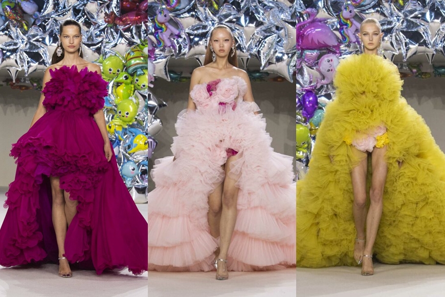 這是 Giambattista Valli 職業生涯的第 23 場高訂時裝騷,亦是他正式進入巴黎高級訂制時裝週日程的十週年紀念日。熟識高訂時裝的人,相信一眼便能識別出他筆下的標誌性設計語言,糖果般色彩的輕柔薄紗,在一層層的堆疊下猶如蛋糕般蓬鬆的精緻廓形,成為近年在紅毯大搶焦點的美服。