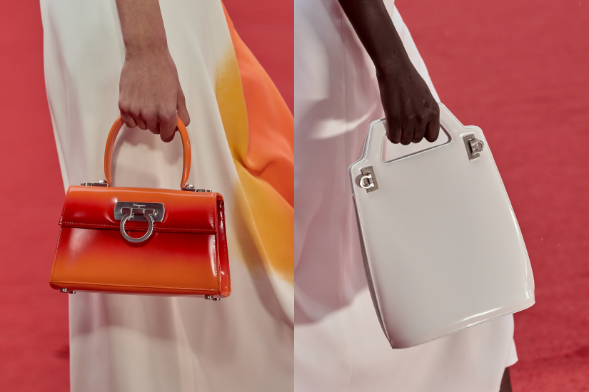 配飾也是亮點之一,於1988 年首次面世,以 Salvatore 的妻子命名的 The Wanda bag 帶來重新詮釋,棱形單肩包則帶有極簡主義和充滿現代感,另一款鏤空手袋,採用拋光皮革製成,內襯以鮮明的帆布作為對比,巧妙呼應雕塑感首飾的波狀造型,令人眼前一亮。全新高跟鞋的 Gancini 造型鞋跟,經典卻玩味十足。