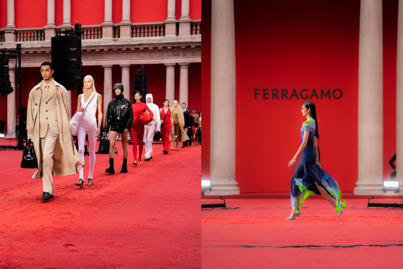 2023 春夏系列以荷里活式的文藝復興主義作為主軸出發,Davis 解釋道: 「我想以荷里活文化向 Salvatore 致敬—這指的是新的荷里活,歌頌其獨有的輕鬆和性感,巧思描摹日落和日出。」這次系列的理念在於回溯品牌經典,並以當代視角重新演繹。時裝秀特別選址在建於 17 世紀的米蘭前大主教修院舊址舉辦,是世界上最古老的神學院之一,騷場地面也覆以紅色沙石,延續了新 logo 的氣勢。