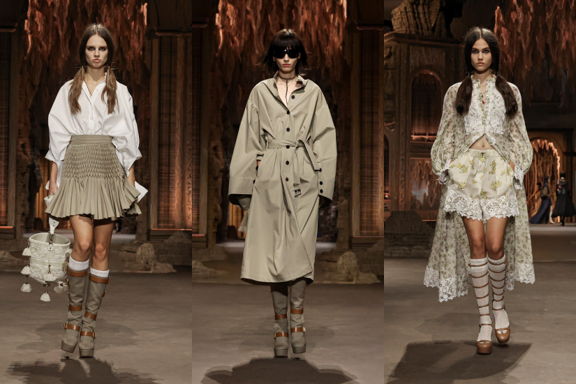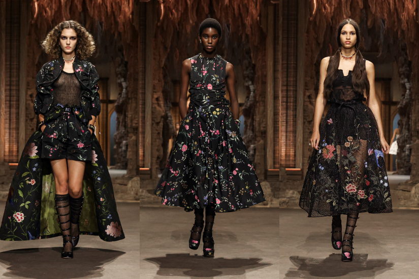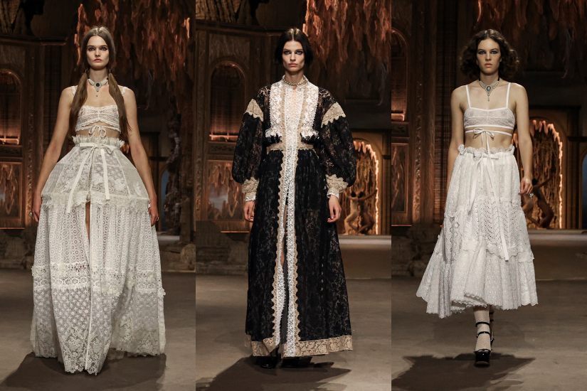 服裝採用大量蕾絲元素,也不忘為注入運動感與舒適感,其中裙裝造型採用繡花棉布、馬德拉刺繡拼布或地圖印花,並從中間分開搭配短褲;緊身胸衣擺脫了其框框限制,成為配飾搭配寬鬆襯衫,顯得輕鬆自在,而歷史悠久的拉菲草大褸綴以花卉和雀鳥主題圖案,體現 Dior 以創意和當代技術革新傳統的風格。