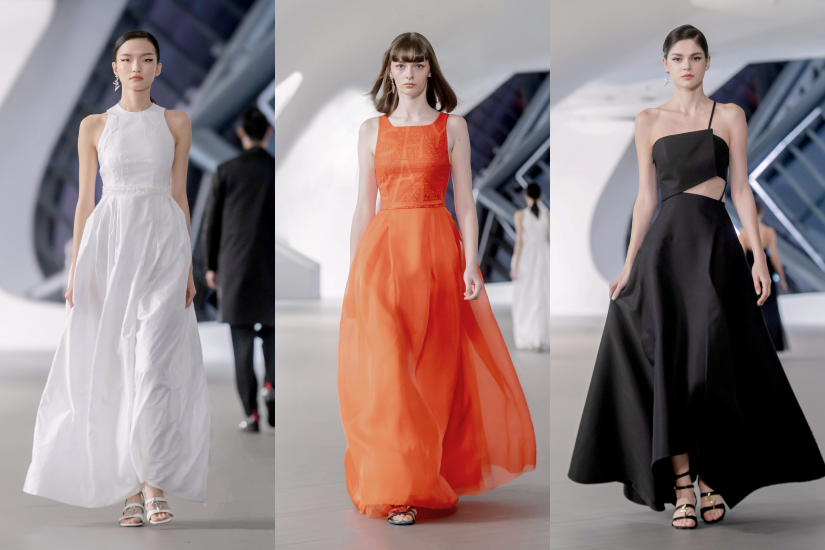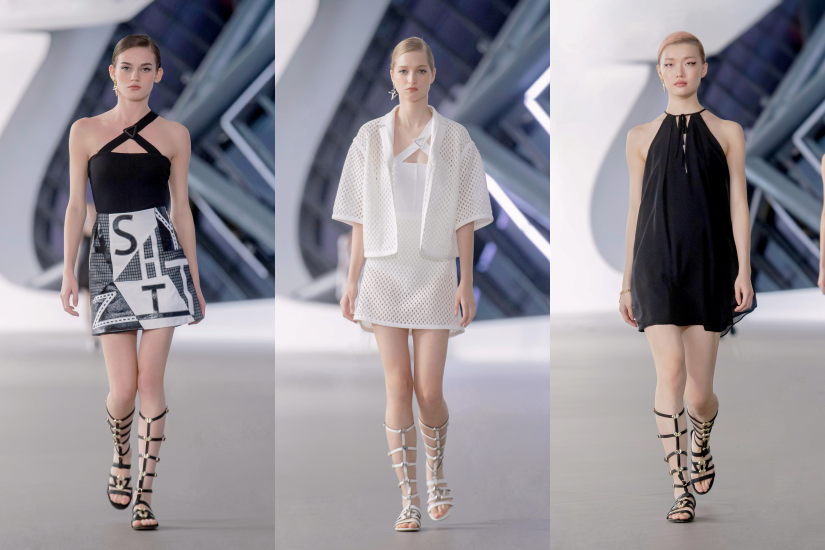 服裝洋溢 60年代風格,俏麗西式的復古輪廓融合充滿個性的幾何線條,在經典迷你裙套裝上點綴菱形鏤空設計、H-line方形結構網狀外套的交錯搭配,以及幾何線條緹花直筒立領洋裝,傳遞著當代女性灑脫自主的宣言。
