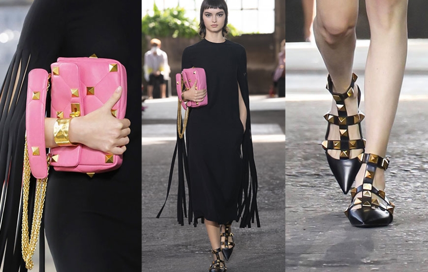 色調方面,展現出多元一面,既有膚色、米色和駝色等中性色調,亦有在黃褐色、焦糖色和薑黃色的映襯下更顯生動的棕色,還有與這些色彩相得益彰的精緻蜜桃色,間或點綴深邃濃郁的黑色,中段的紅色蛇紋造型更是刺激了官感視覺。