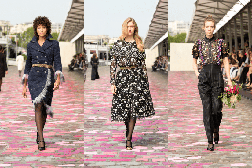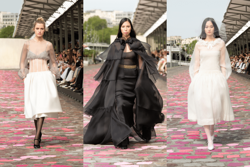 時裝秀選址巴黎塞納河畔碼頭,在周圍街道及路面鋪砌的彩色石塊襯托之下登場。模特兒穿上精緻簡約的高訂新裝、腳踏 Mary Jane 鞋,遛著狗或提著盛載鮮花的織籃,仿如於街頭漫步般,呈現出巴黎的日常風采,就像一趟由影像、情感、永恆時尚及美感構成的旅程。