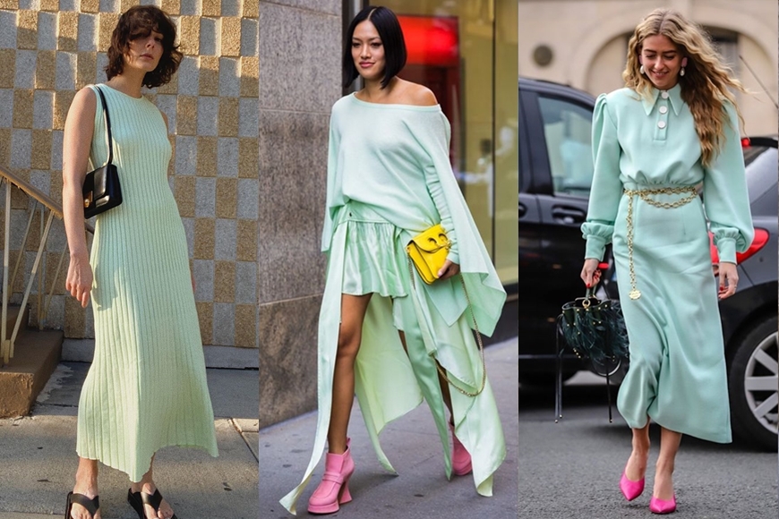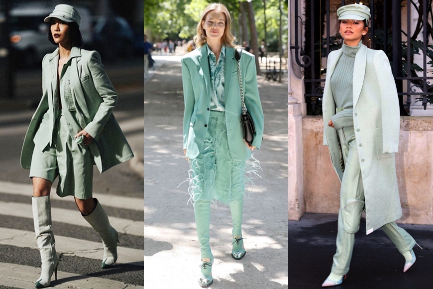其實你也可把這種清新色調穿得更型格一些,譬如可以用黑色的單品混搭,穿出 cool girl 的味道;又或是以一些寬鬆的單品如 oversized 襯衫和大衣等搭襯出休閒街頭風,將柔和的 Misty Jade 演繹出另一面貌。